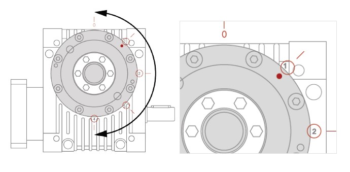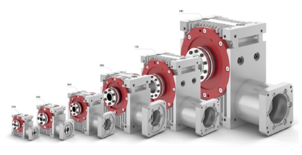2~60までの減速比に対応した全6サイズのラインナップ。取付方向は4パターン。