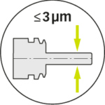 ①.システム全体の振れ精度≤3 μm @ 3 x D.